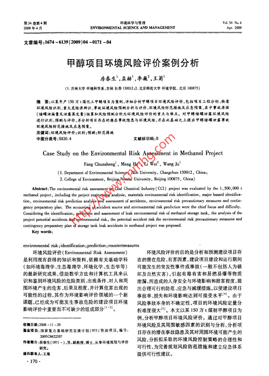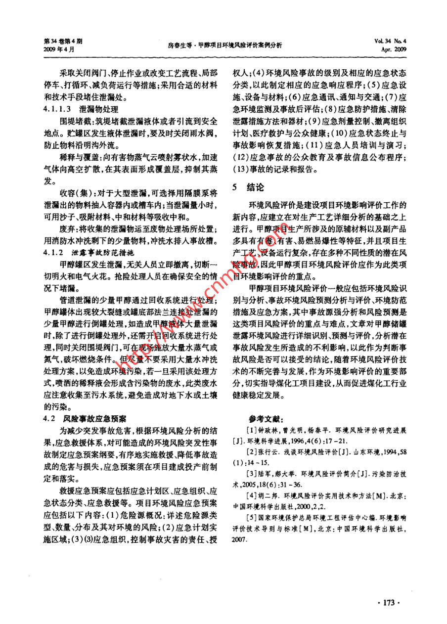 甲醇項(xiàng)目環(huán)境風(fēng)險(xiǎn)評(píng)價(jià)案例分析