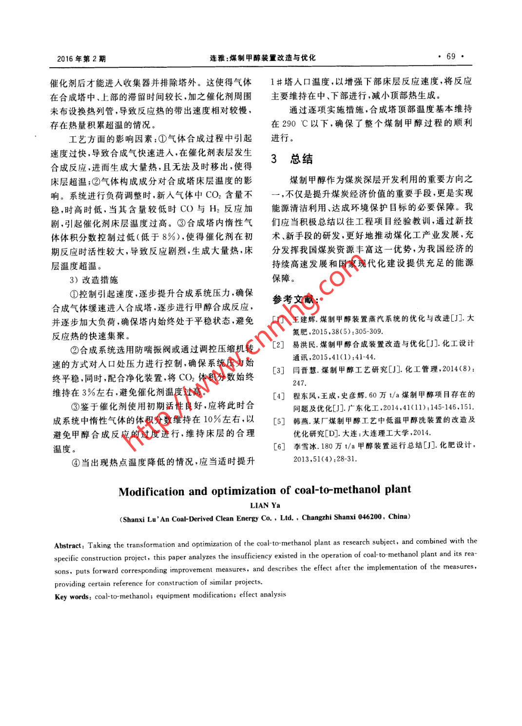 煤制甲醇裝置改造與優(yōu)化