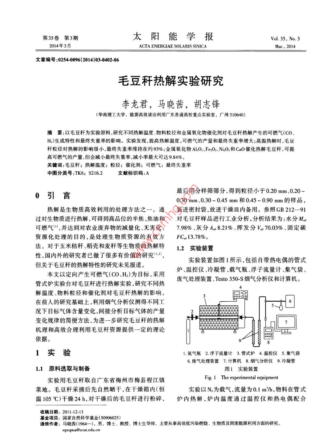 毛豆稈熱解實(shí)驗(yàn)研究