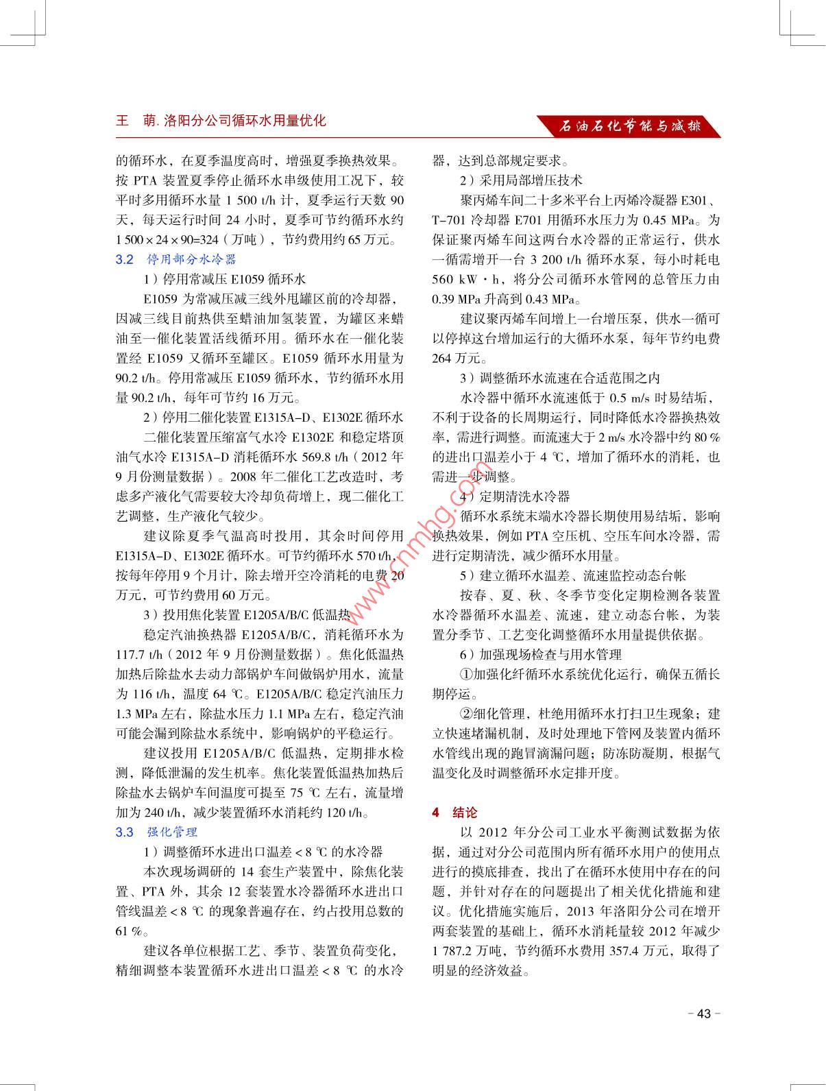 洛陽分公司循環(huán)水用量優(yōu)化