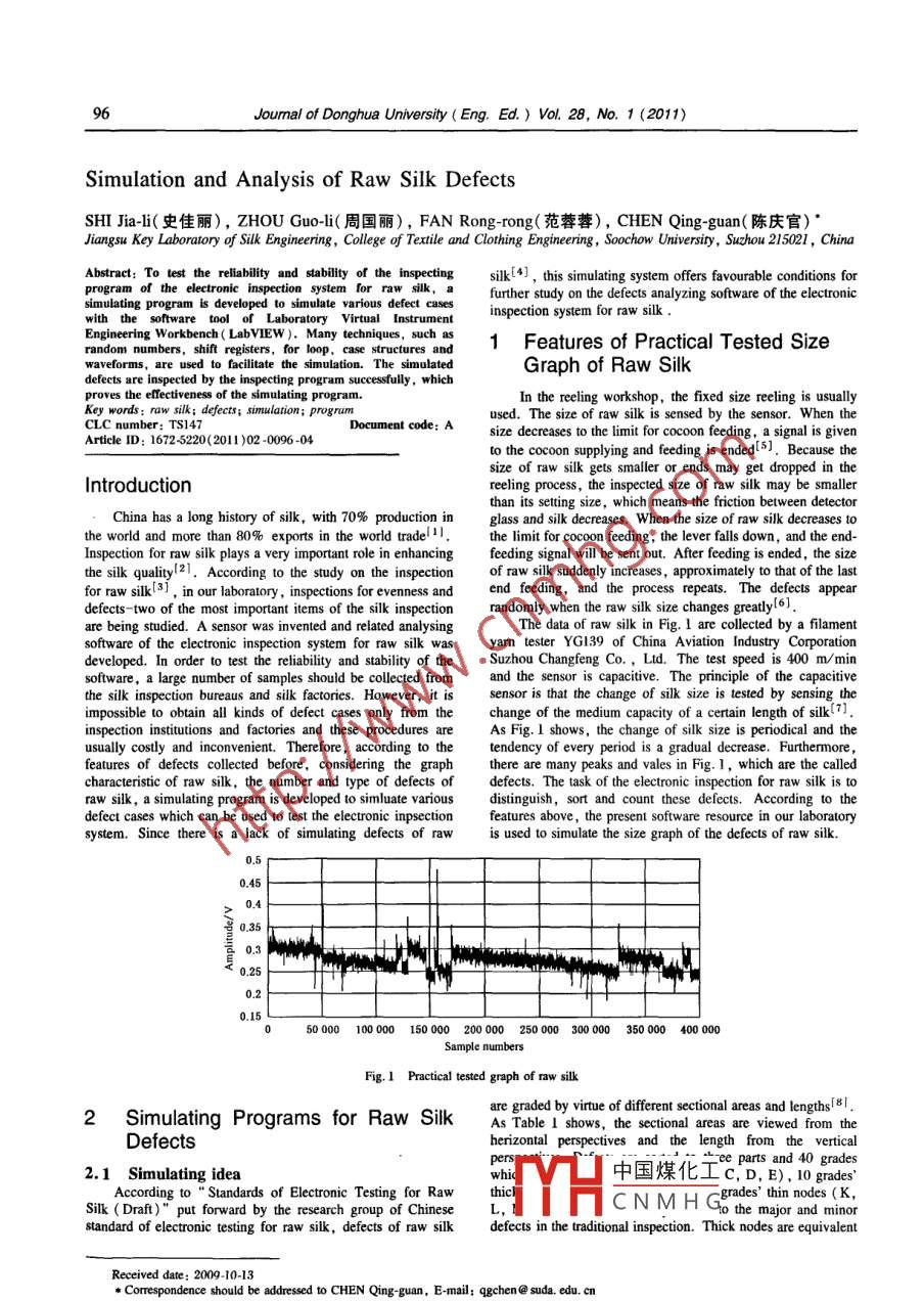 - 期刊名字:東華大學(xué)學(xué)報(英文版)