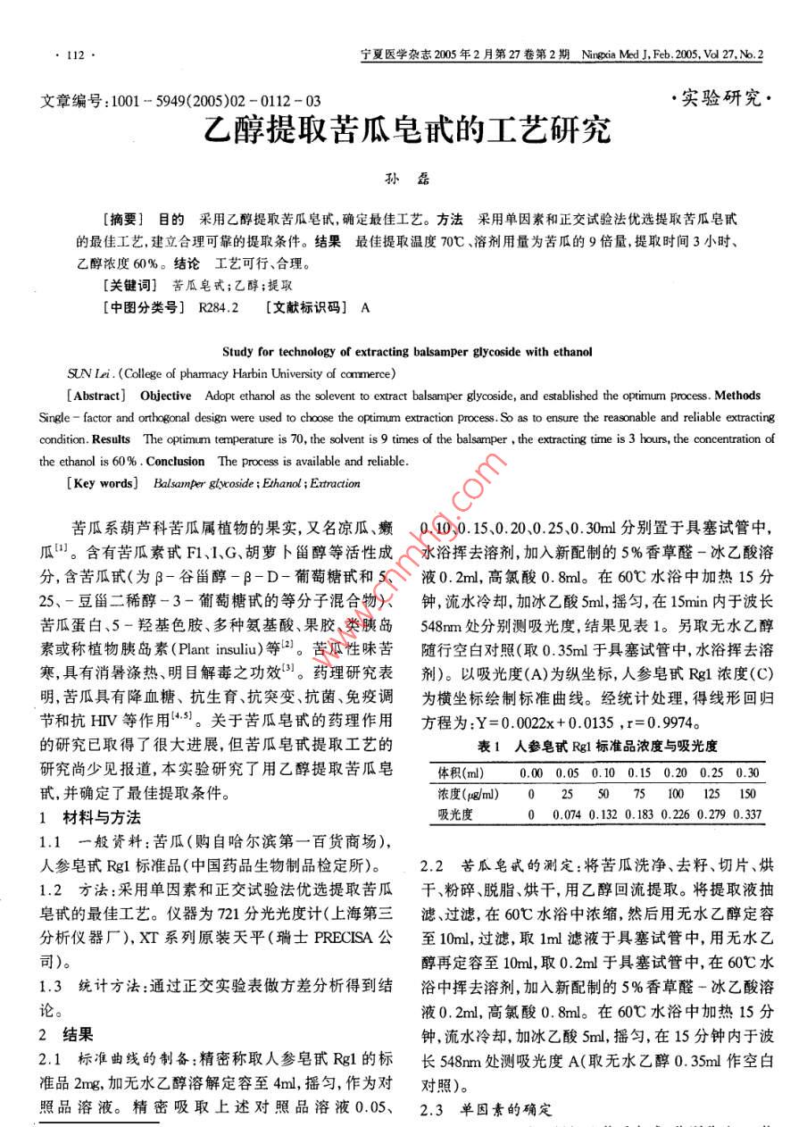 乙醇提取苦瓜皂甙的工藝研究