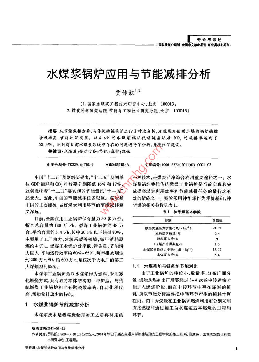 水煤漿鍋爐應(yīng)用與節(jié)能減排分析