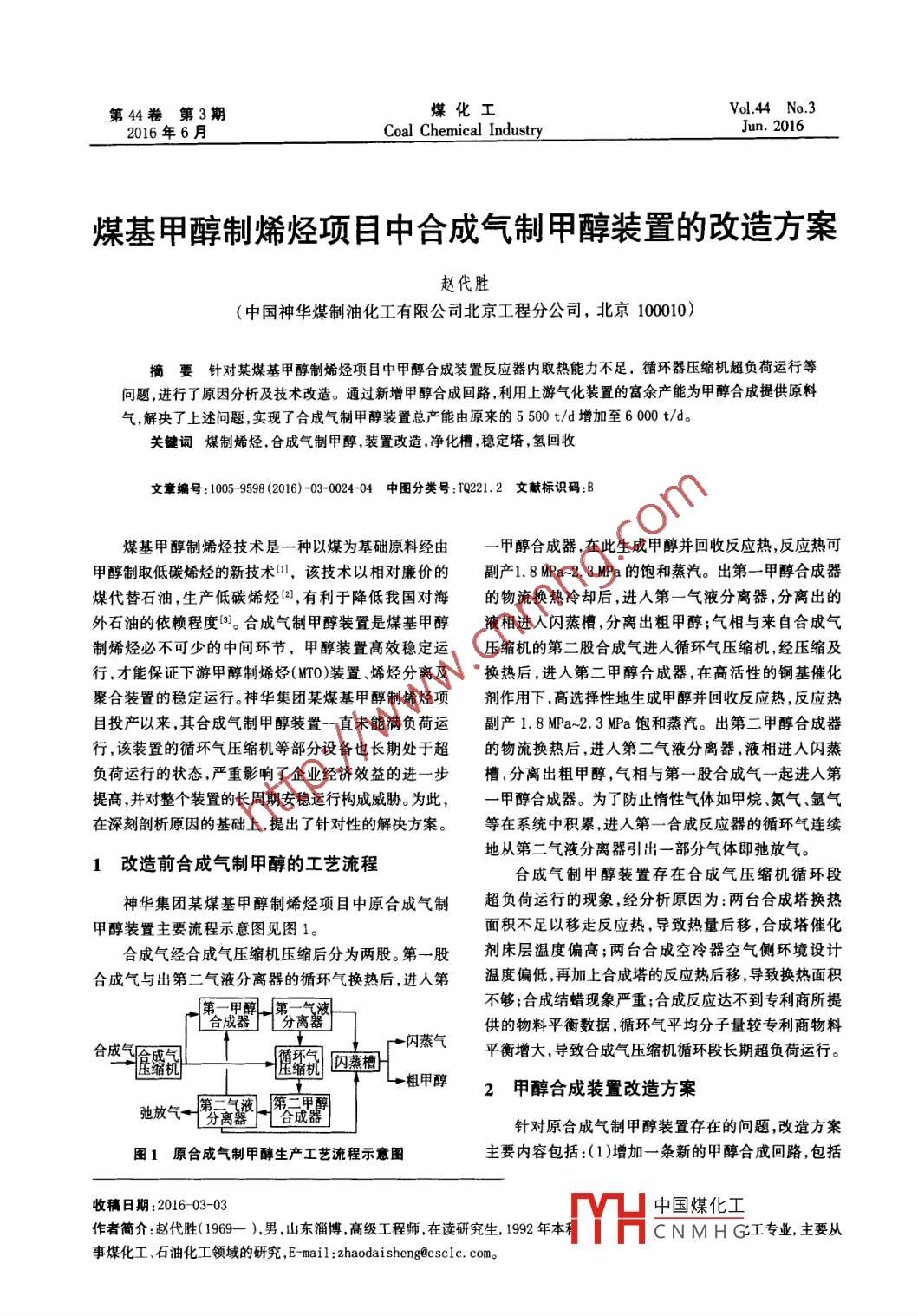 煤基甲醇制烯烴項目中合成氣制甲醇裝置的改造方案