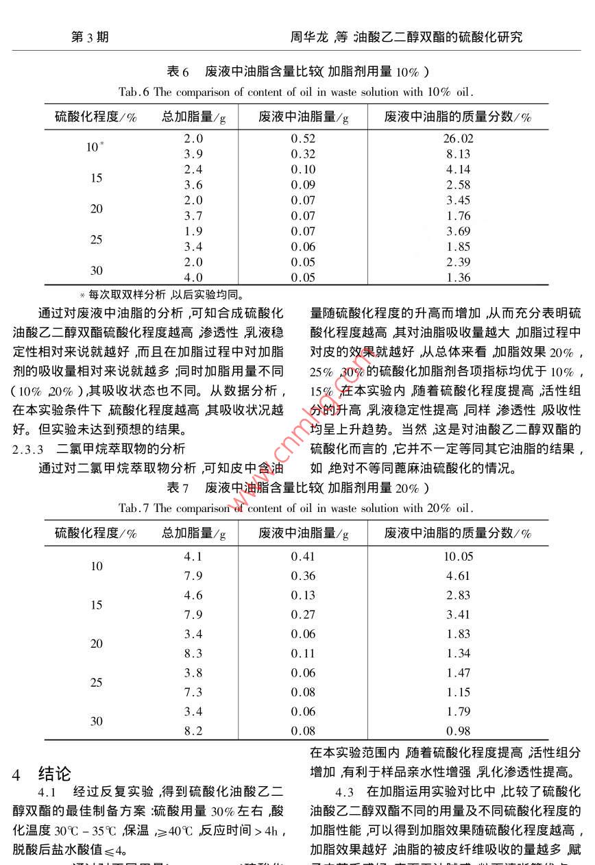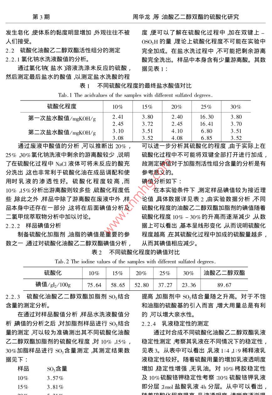油酸乙二醇雙酯的硫酸化研究