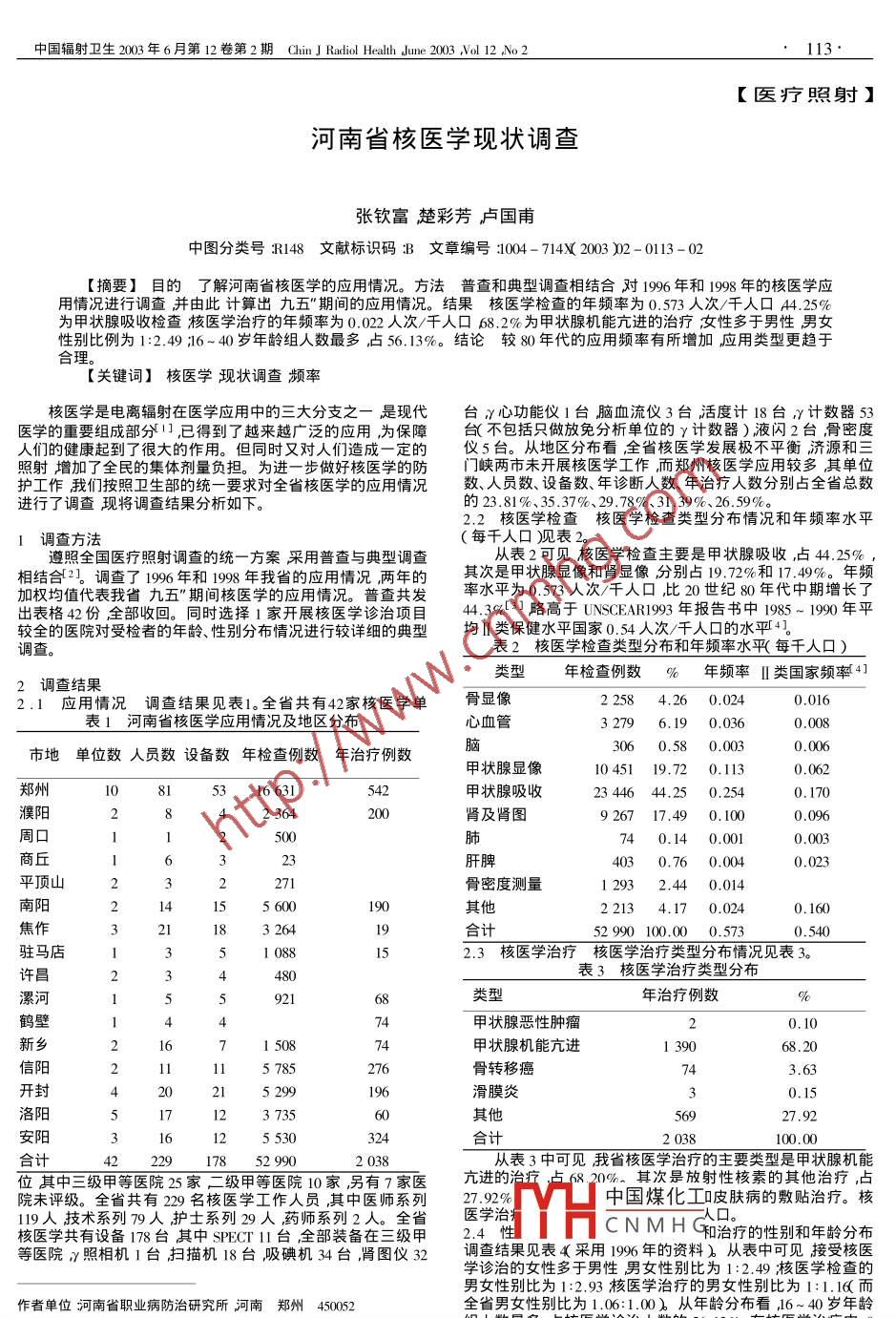 河南省核醫(yī)學現(xiàn)狀調(diào)查