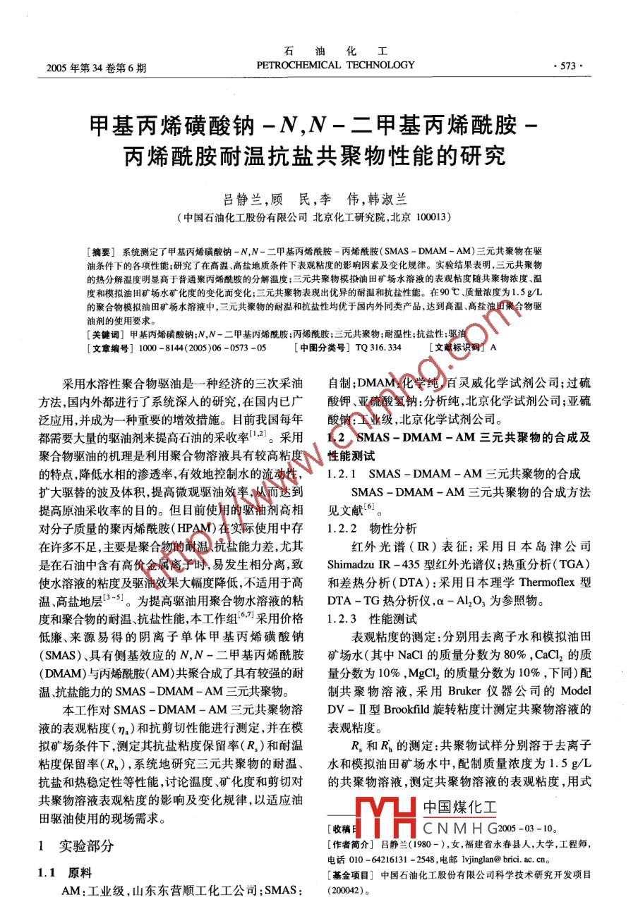 甲基丙烯磺酸鈉-N,N-二甲基丙烯酰胺-丙烯酰胺耐溫抗鹽共聚物性能的研究