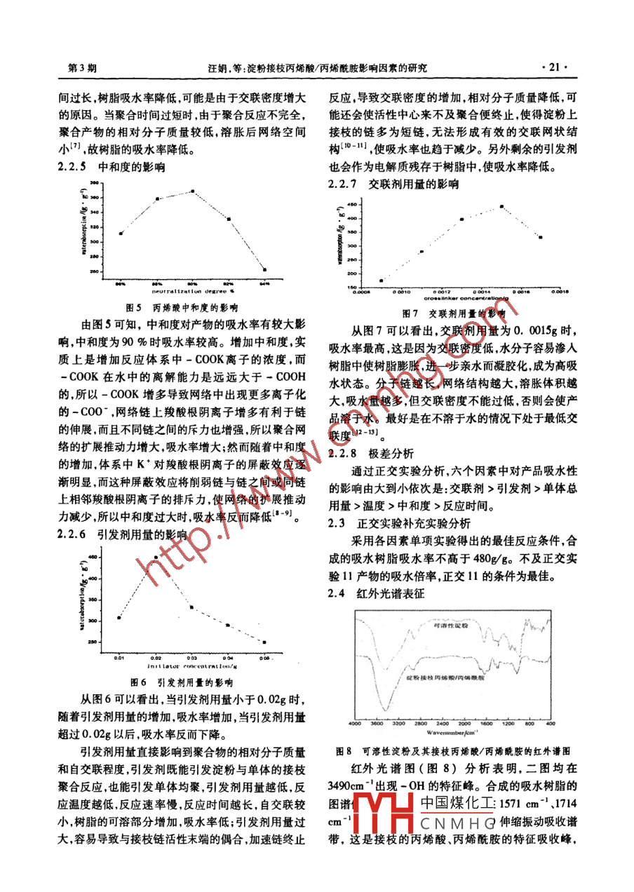 淀粉接枝丙烯酸/丙烯酰胺影響因素的研究