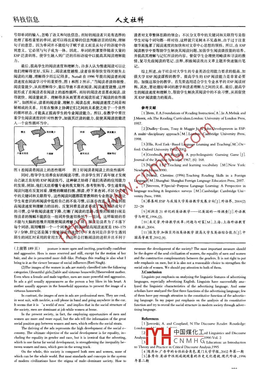 科技信息人文社科Discourse Analysis of Commercial Advertising Language青島農(nóng)業(yè)大學(xué)外國(guó)語學(xué)院杜瑞杰[Abstract ]There have been many researches on advertising language; however, few of them are conducted in the framework of discourseanalysis and take insights from sociolinguistics. In this paper I will analyze commercial advertising language, consumer ads in particular, beyondthe traditional way of description, but go a step further- to interpret advertsing and focus more atenion on the reflctivce and consicutivefuncions of commercial advertising language.[Keywords ]advertising language discourse analysis constitutive fiunction1.Introductionthe personal appearances we choose to ereate. When men and women appearThere have been many researches on advertising langunge; however, fewin ads together, the women are often depicted鶴weaker than the male, eitherof them are conducted in the framework of discourse analysis and take insightsthrough composition of the ad or particular situations in the scene. When fe -from sociolinguistics. Frthermore, linguiststputemales appearinads aoneweainnotehestreotypeofthefemnaleasexual,linguistic features of adverising languages, especially advertising English.Linguists have successfully analyzed the linguistic characteristics of the ad-Particular roles and gender constructs are also evident in male ads. Males arevertising language(C.lLech 1996;Vestergard&Schroder 1985;Guylook 1994;told to act tough, hide their emotions, and compete at alll costs (ThompsonTanaka 1994; Tan Weiguo 1994; Zhouxiao&Zhou Yi 1998; etc,). Though1993:146- -7). Nancy Chodorow argues that the atainment of masculinity is asome scholars mention that advertising has three functions (namely, the infor-problenatic ise for boys (1974:51), particularly as boys are taught to dffe-mative function, the persuasive function and reflective funetions, they onlyentiate themselves from others.provide an analysis of the informative function and persuasive function. In thisYou might also explore with your students the role advertisements play inpaper I will analyze commercial advertising language, consumer ads in partic-the development and perpetuation of gender-role stereotypes. Jones (1991)ular, beyond the traditional way of description, not to mention he social- -cul-noted that an analysis of advertisements by Goffman (1976) found numeroustural context of advertising, but goes a step further- to interpret adverising: funtionsofaisand focus more atention on the ellctive and constitutive()functional ranking -he tendency to depict men in executive rolesand as more functional when ollaborating with women;2.Functions of advertising language(2)relative size - the tendency to depiet men as taller and larger thanSome scholars mention that advertising has three functions (namely, thewomen, except when women are clearly superior in social status;informative function, the persuasive function and rflective functions, they on-(3)itualization of subordination一an overabundance of images of wonenly provide an analysis of the informative function and persuasive function. N.lying on foors and beds or as objects of men's mock assulus;Coupland and J.P.Gee have argued the necessity for discourse analysis to go(4)the feminine touch- the tendency to show women cradling and ca-from description to interpretation and have reminded us of pauing enough at-ressing the surface of objects with their fingers;tention to language' s relctive and constitutive functions. N.Fairelough call(5)family - - fathers depicted as physically distant from their families orthe part of analyzing linguistic foms國(guó)‘description' and the part, whichts relating primarily 10 sons, and mothers depicted as relating primarily todeals with analysis of discourse practice and social practice as。inteprela-daughters.tion'. (1992).In my paper I will mainly focus on the analysis of the fourth point, that is,the role of the women in the advertising.Although advertising is usually defined by making relerence to its pre- -(1)Some ads tend to has discrimination on women. Aggressive men aredominant function, the conative or persuasive function, which urgrs people toviewed a more powerful in our sociely, while women are viewed submissive tobuy a product, diferent authors have made reference to the crucial mle playedmen. As is listed in the folowing.by other functions, but the basic function of advertising is the infomative1)The happiness of women depends on the appearance pprciation fromfunction, beeause it is the prime function of advertising at the stage of intro-men;ducing a new product. Thus, Cook (1992: 5) argues that advertising also pre-2)The social value of women exists in the family domain;sents functions such as amusing. informing, pleading, waming, ete.3)Great women should be behind men and feel honor for the success of2.2 The reflective funetiontheir husband;Vestergard &Schroder argue in the foreword of their'The Language of4)Many w4)Many women accept the idea that womnen are subrisive to men andAdrertising' (1985) that‘ ad relets certain aspects of that society's valuesshould be ready to sacrifice for their husband.and that society' s structure. Some scholar says that the best way to discoverthe lfestyles of young people in Taiwan is to read several commreial adswhose target consumers are the youth. Vestegard &Schroder (1985) haveKOFsuch an idea as mentioned above, and they only ollcted many examples andfailed to provide detailed analyses. Guy Cook (1994) emphasizes on demon-strating the advertising language”s particular influence on human minds andchanges people' s mental representation of resarch on‘ Relevance Theory'and wants to points our how the readers understand the ads. None of themgave a detailed analysis of the relationship between ads and social context. Inmy paper fllowing I will put emphasis on this part.2.3 The constitive functionportrayed a confident, dominant, and determined t