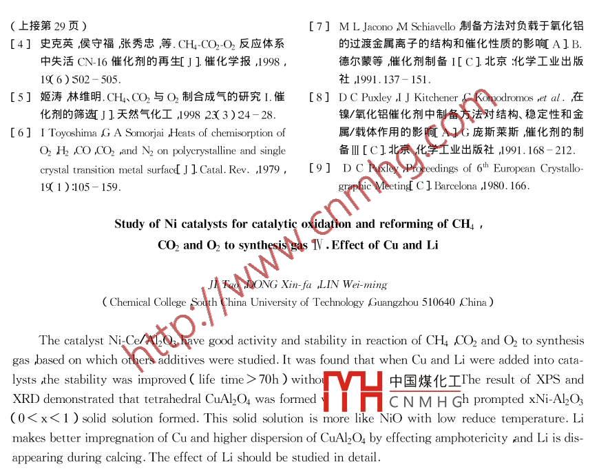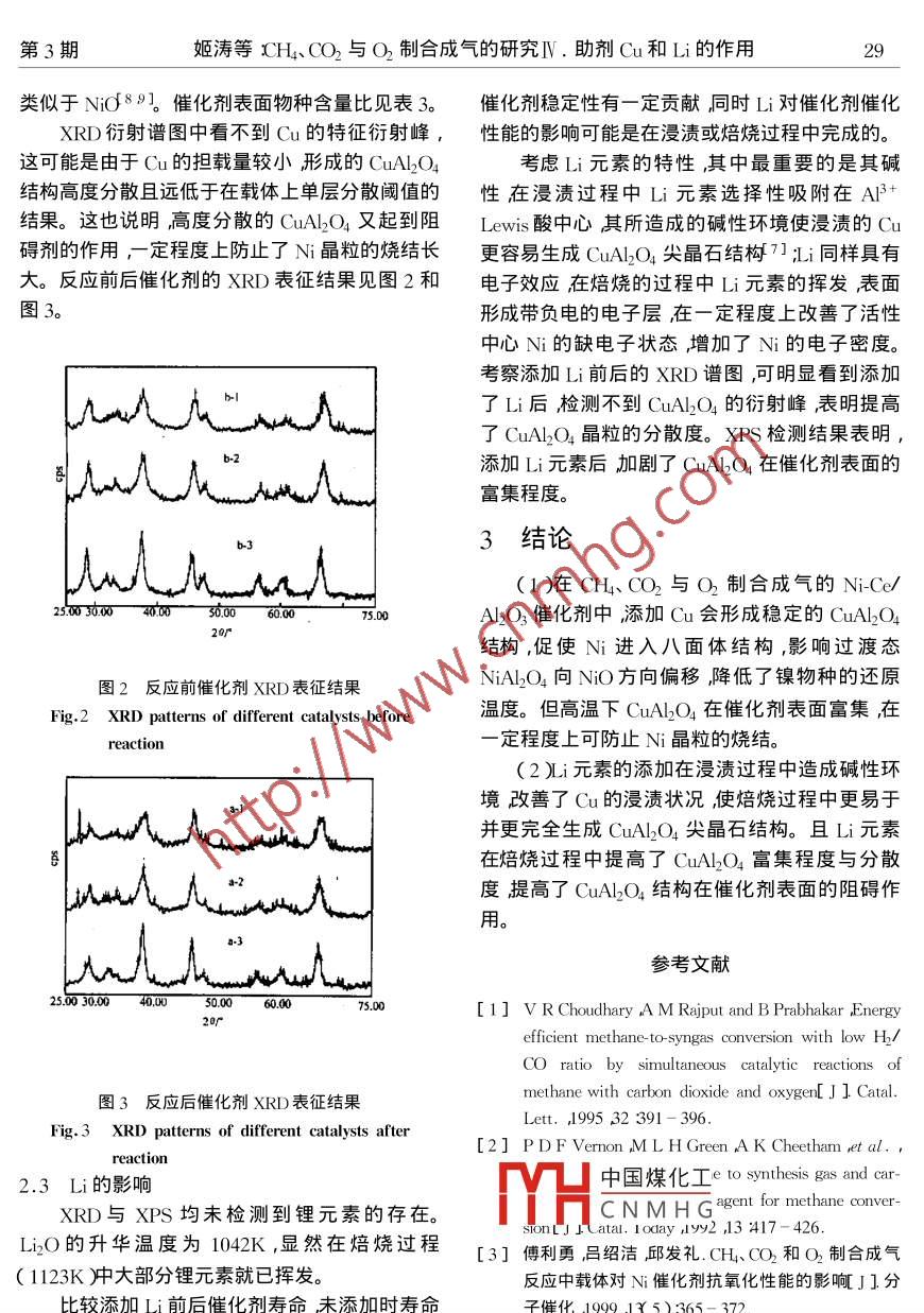 CH4、CO2與O2制合成氣的研究Ⅳ.助劑Cu和Li的作用 CH4、CO2與O2制合成氣的研究Ⅳ.助劑Cu和Li的作用