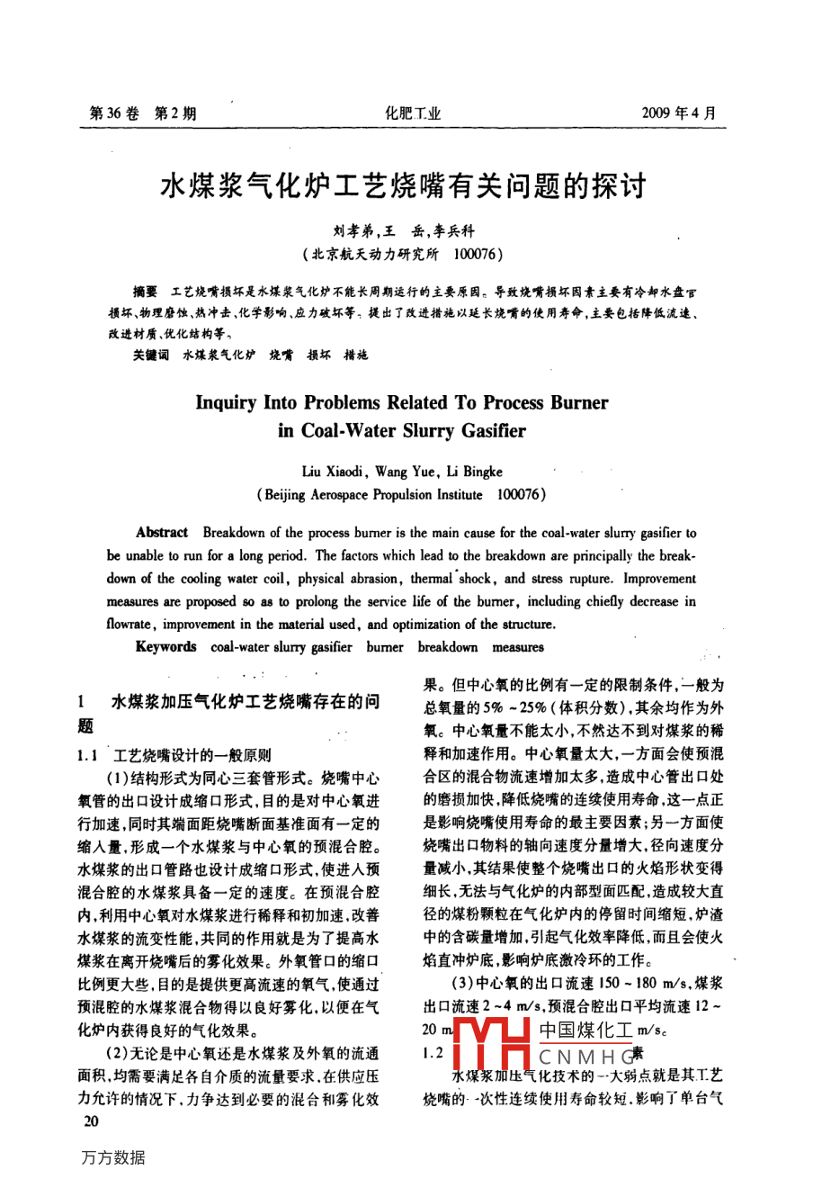 水煤漿氣化爐工藝燒嘴有關(guān)問題的探討