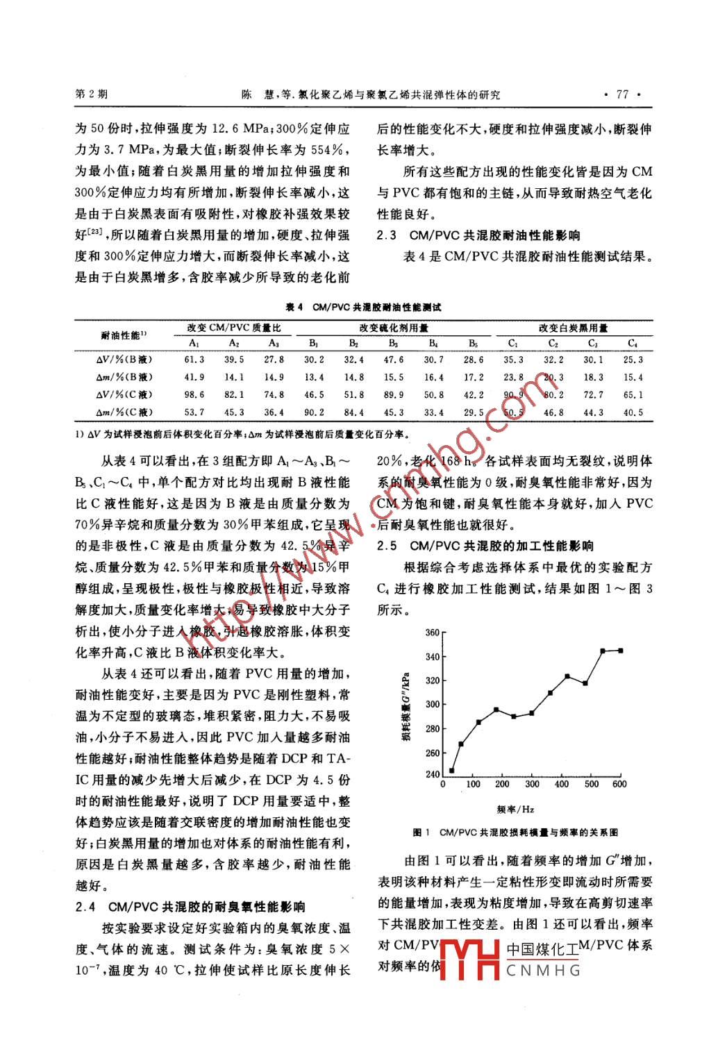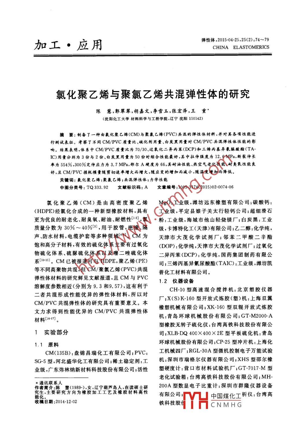 氯化聚乙烯與聚氯乙烯共混彈性體的研究