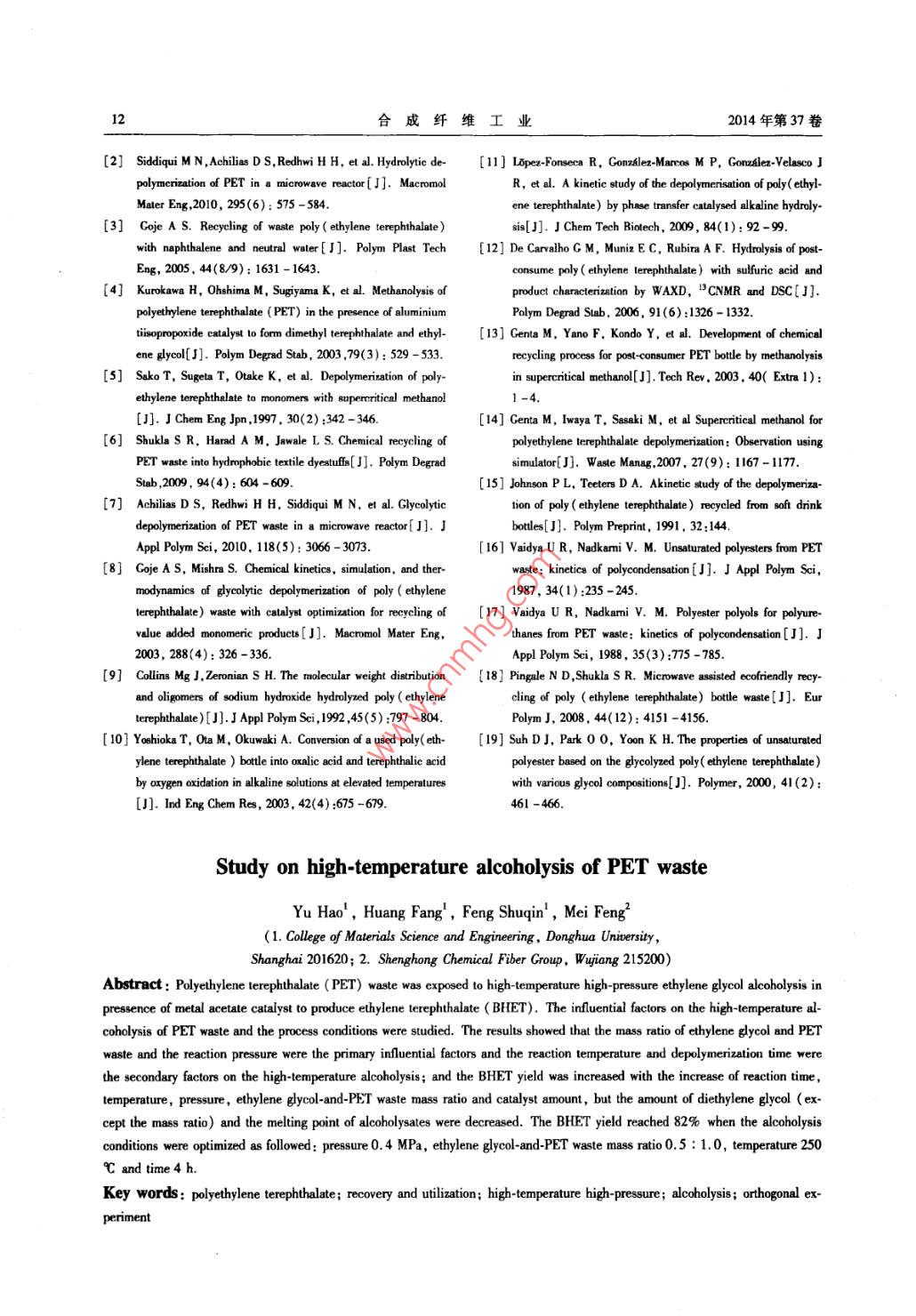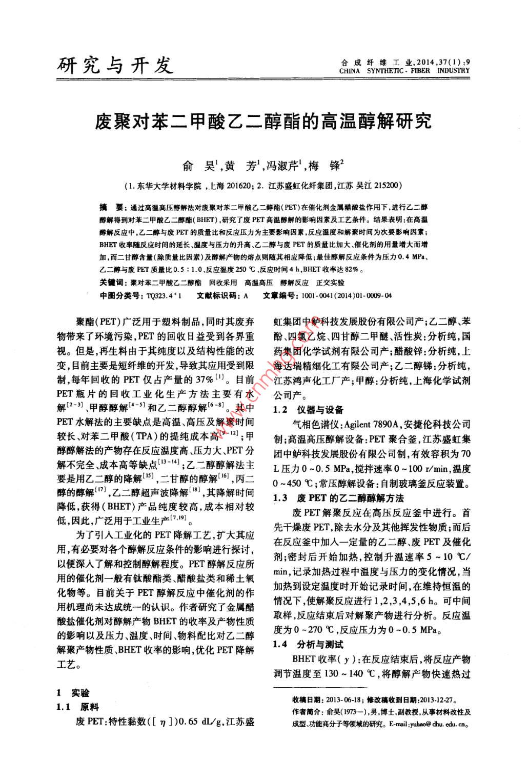 廢聚對苯二甲酸乙二醇酯的高溫醇解研究
