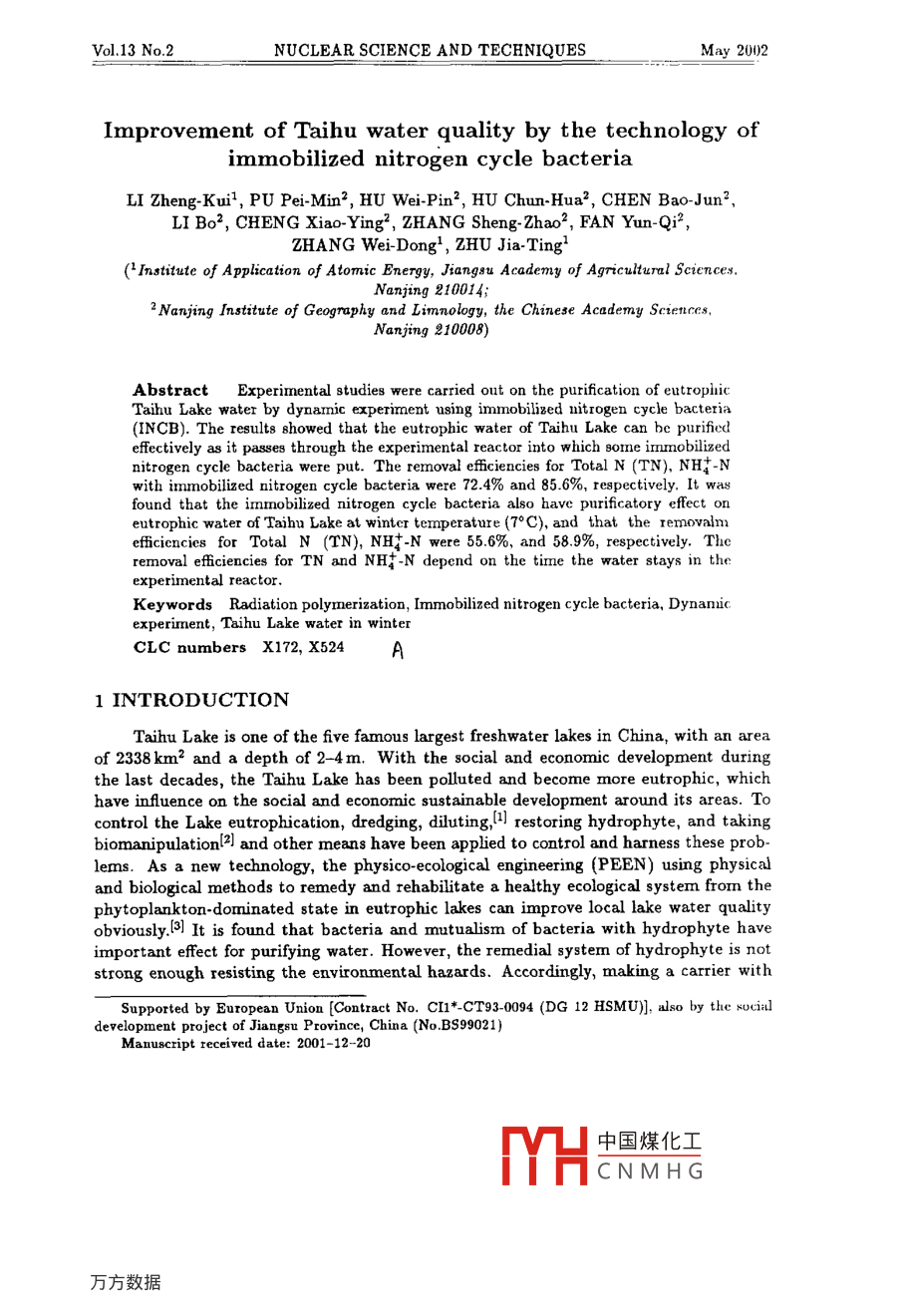 - 作者單位:Institute of Application of Atomic Energy,Nanjing Institute of Geography and Limnology
