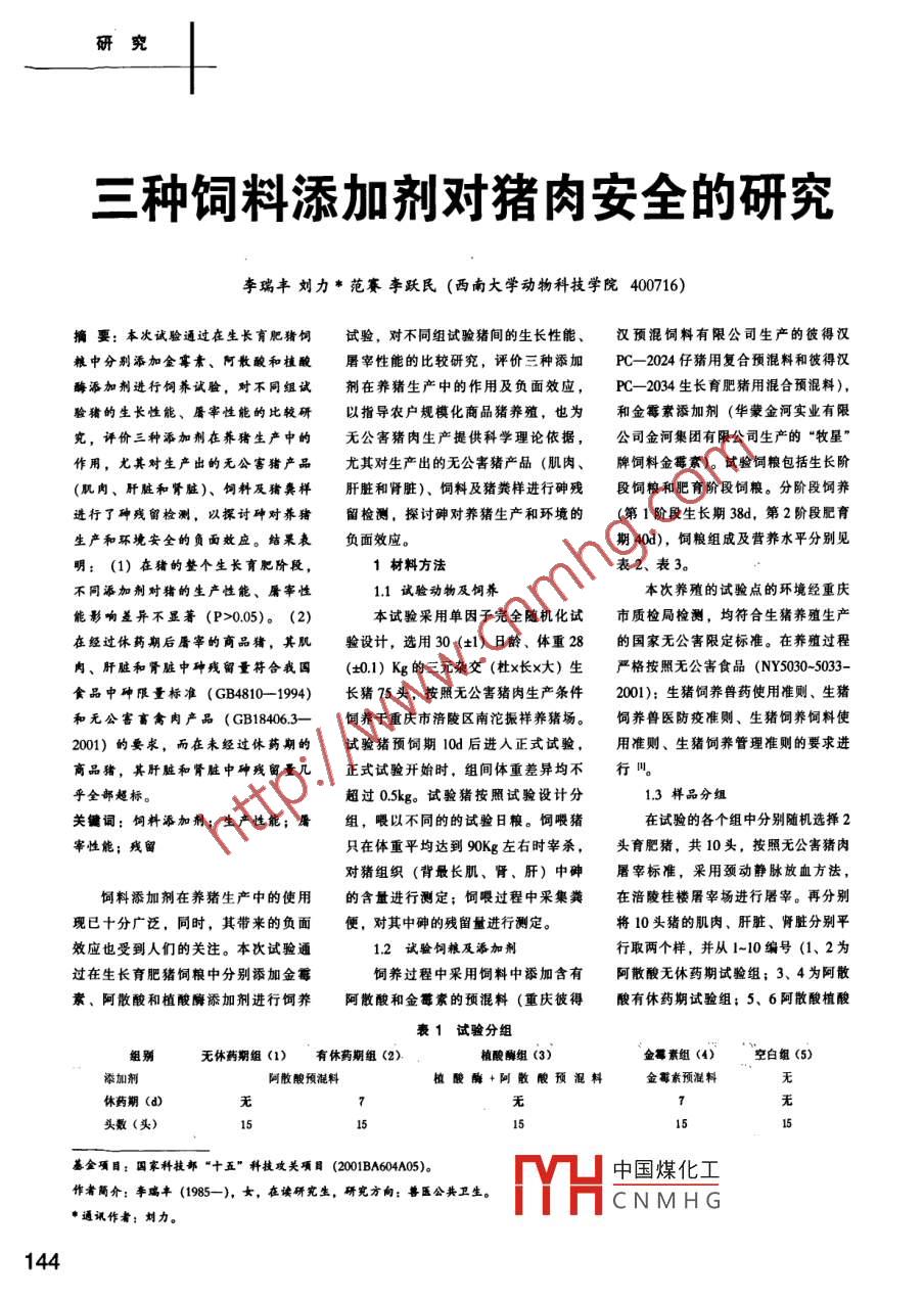 三種飼料添加劑對豬肉安全的研究