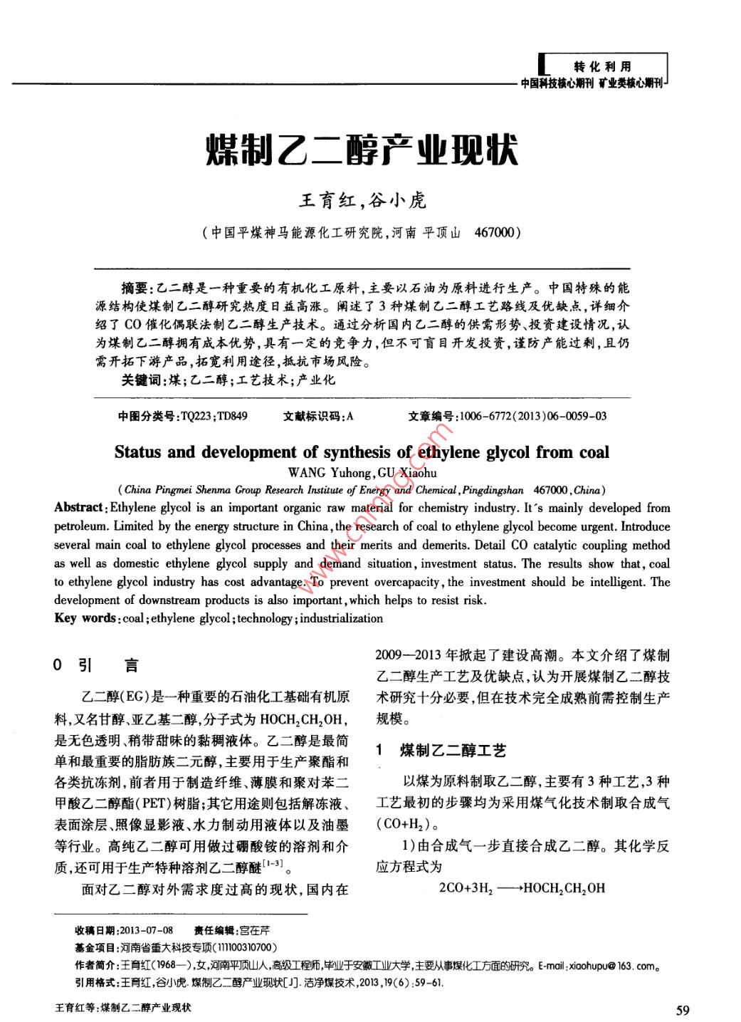 - 作者單位:中國平煤神馬能源化工研究院