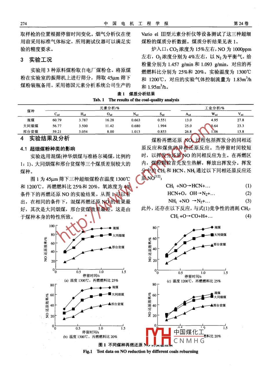 煤種對超細煤粉再燃還原NO效率的影響