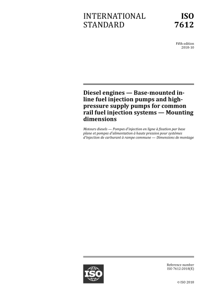 This document specifies dimensional requirements for base-mounted in-line fuel injection pumps and high-pressure supply pumps for common rail fuel injection systems for diesel (compression-ignition) engines.th edition
