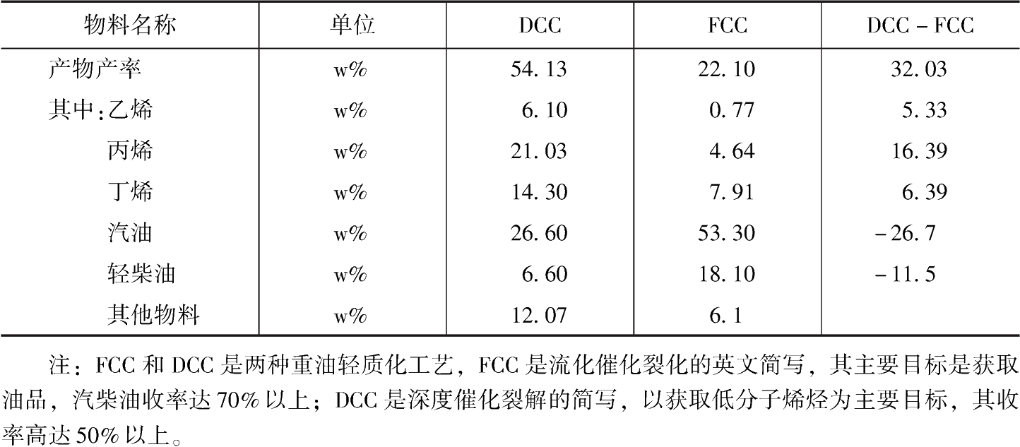 表2 DCC與FCC裝置主要產(chǎn)品產(chǎn)率對(duì)比