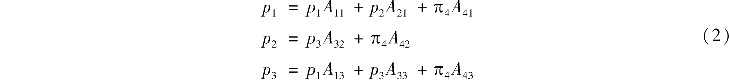 p=(p1,p2,p3)=(p11,p12,…,p1n1,p21,p22,…,p2n2,p31,p32,…,p3n3)是所有SAM矩陣中內(nèi)生部門的價(jià)格向量,記v=π4A(4),其中A(4)=(A41,A42,A43),