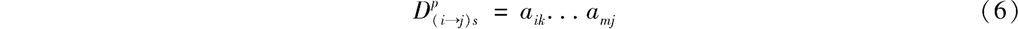 即,若第i部門的價(jià)格受到一個(gè)外生的沖擊,其對(duì)j部門產(chǎn)品價(jià)格的直接影響就是列標(biāo)準(zhǔn)化矩陣A中的元素(i,j)。價(jià)格傳遞模型是一個(gè)線性的結(jié)構(gòu),則部門i通過路徑s=〈i,k,l,...,m,j〉對(duì)部門j的直接影響就是相鄰賬戶之間直接影響的乘積: