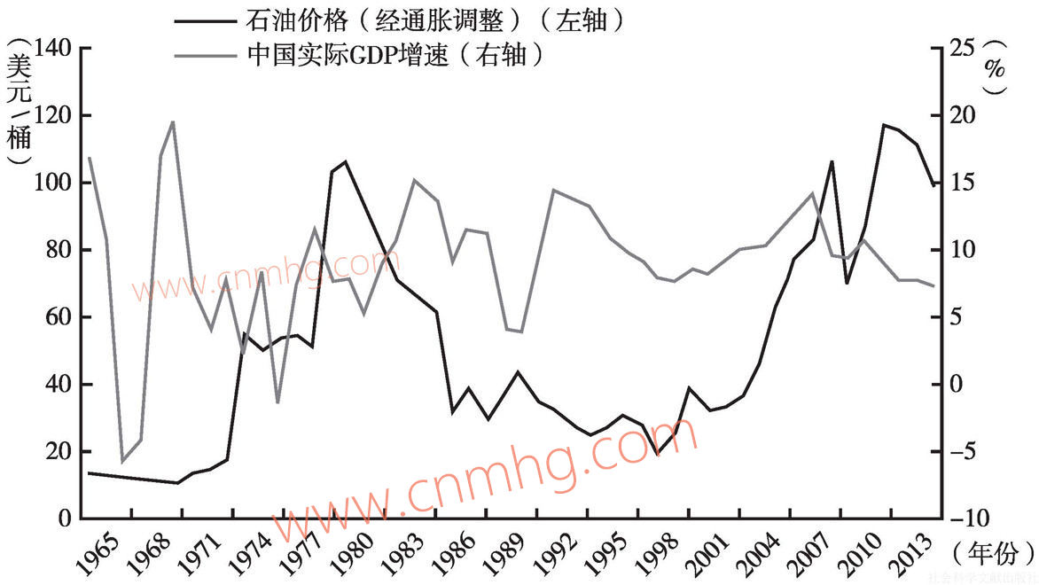 圖3.13 中國(guó)經(jīng)濟(jì)增速與國(guó)際市場(chǎng)石油價(jià)格