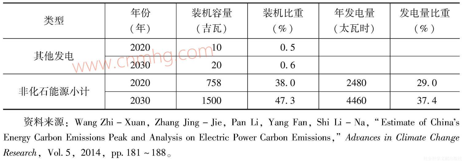 表2 2020年與2030年中國電力裝機(jī)結(jié)構(gòu)及發(fā)電量結(jié)構(gòu)預(yù)測