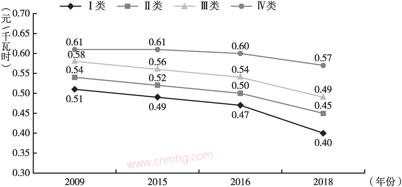 圖9 風電標桿上網(wǎng)電價變化(河南為IV類地區(qū))